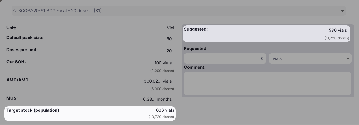 In other words, the system does not take into account stock on order for other vaccine items when displaying a Suggested quantity