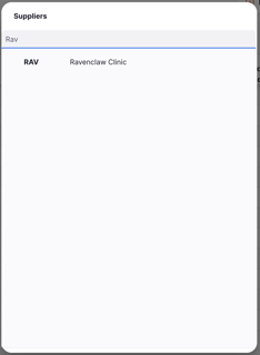 Supplierswindow, you will be presented with a list of suppliers. You can select your supplier from the list or you can begin typing the name of a supplier to filter the list.