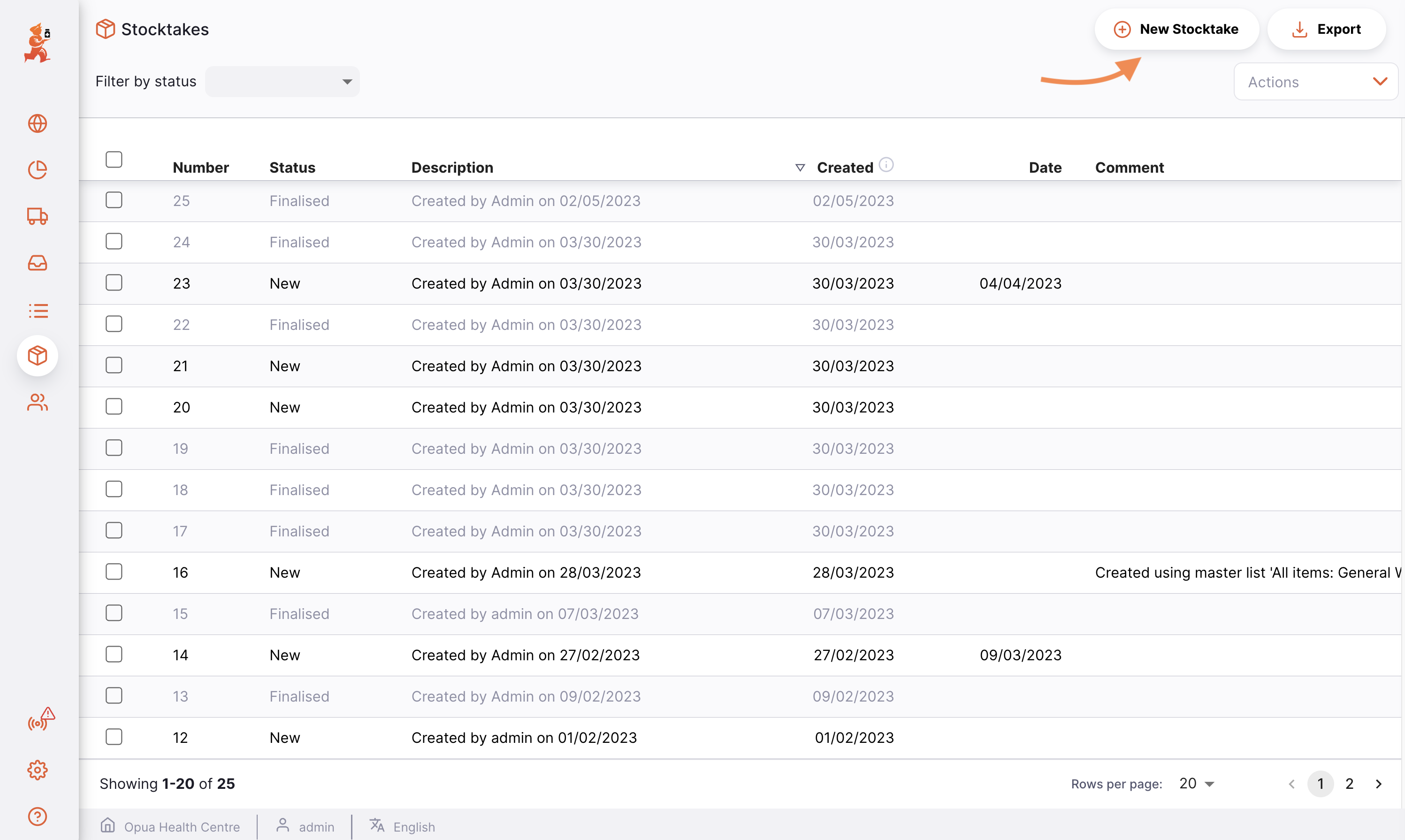 and the stocktake row that requires a reason to be entered will be highlighted in red as shown below.