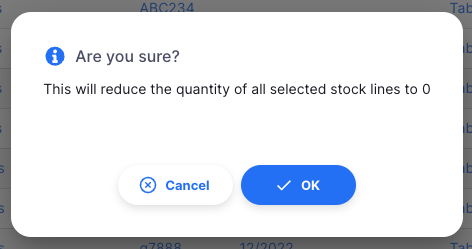 Selecione um motivo e prima OK. Todas as linhas de stock seleccionadas terão agora um valor de `Pacotes contados' de 0.